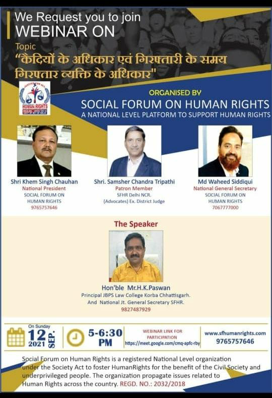 Topic- “कैदियों के अधिकार एवं गिरफ्तारी के समय गिरफ्तार व्यक्ति के अधिकार”